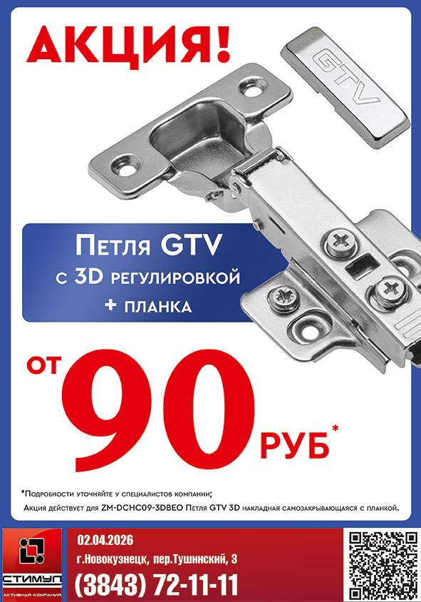 Петля GTV с 3D регулировкой + планка - от 90р!