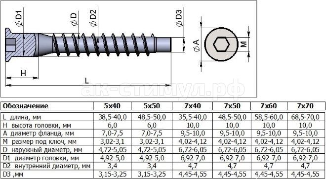 Евровинт под шестигранник 7х50 универс (2000шт)