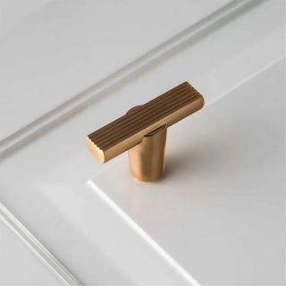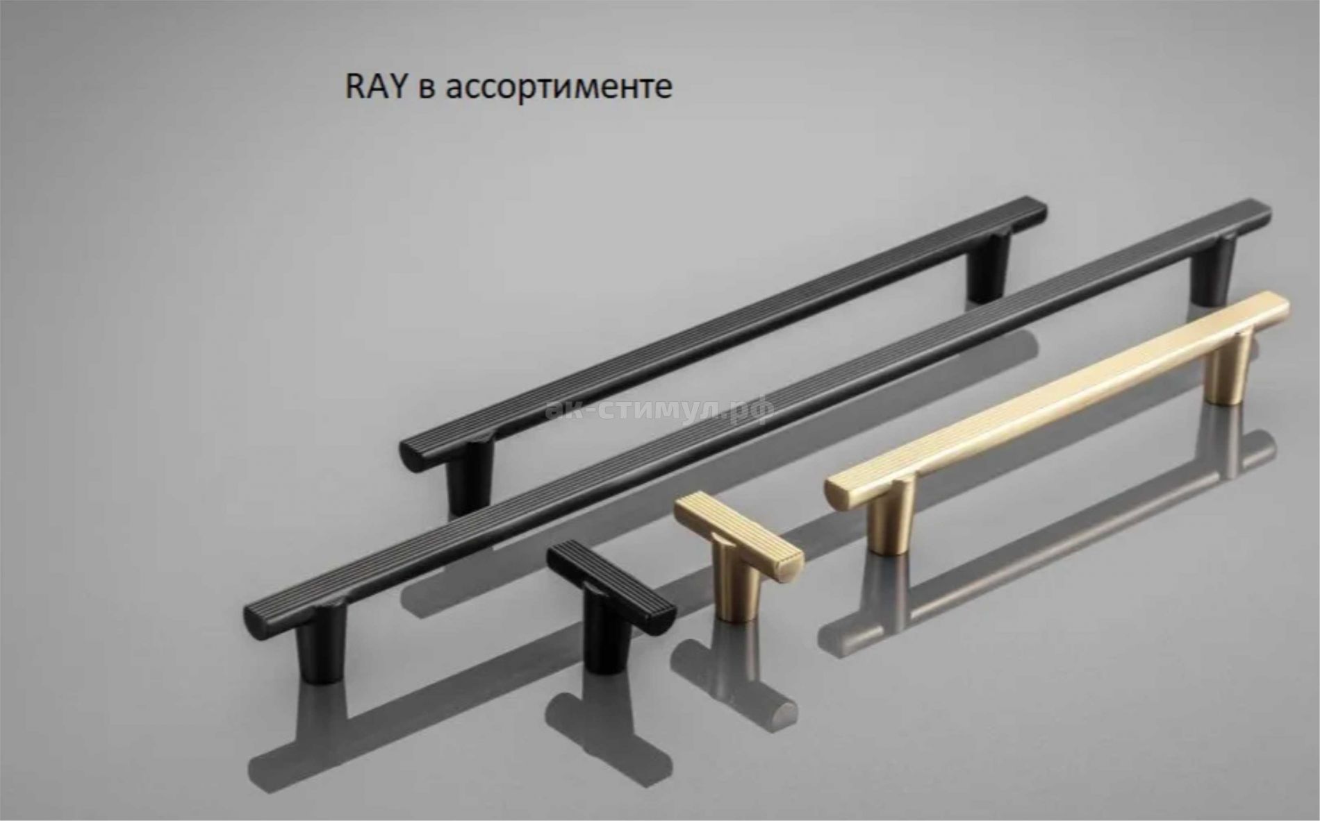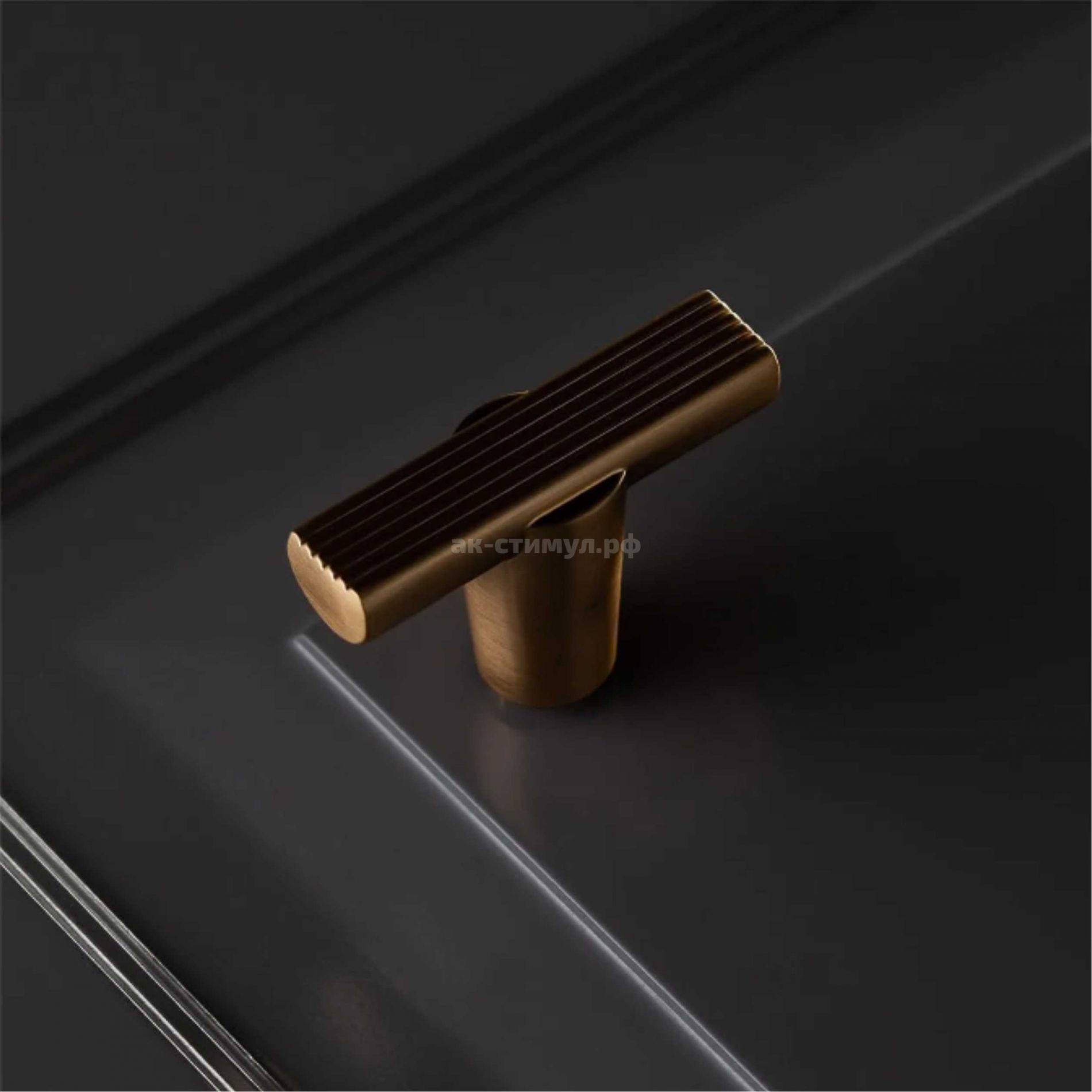 Ручка RAY, брашированное золото - стильный вариант лицевой фурнитуры, красивая ручка-кнопка, отлично вписывающаяся в презентабельный интерьер, выполненный в соответствующем декоре.