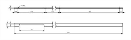 Ручка крепится на 4 винта. Межцентровые расстояния на ручке L-1200: 224, 448, 480 мм.