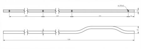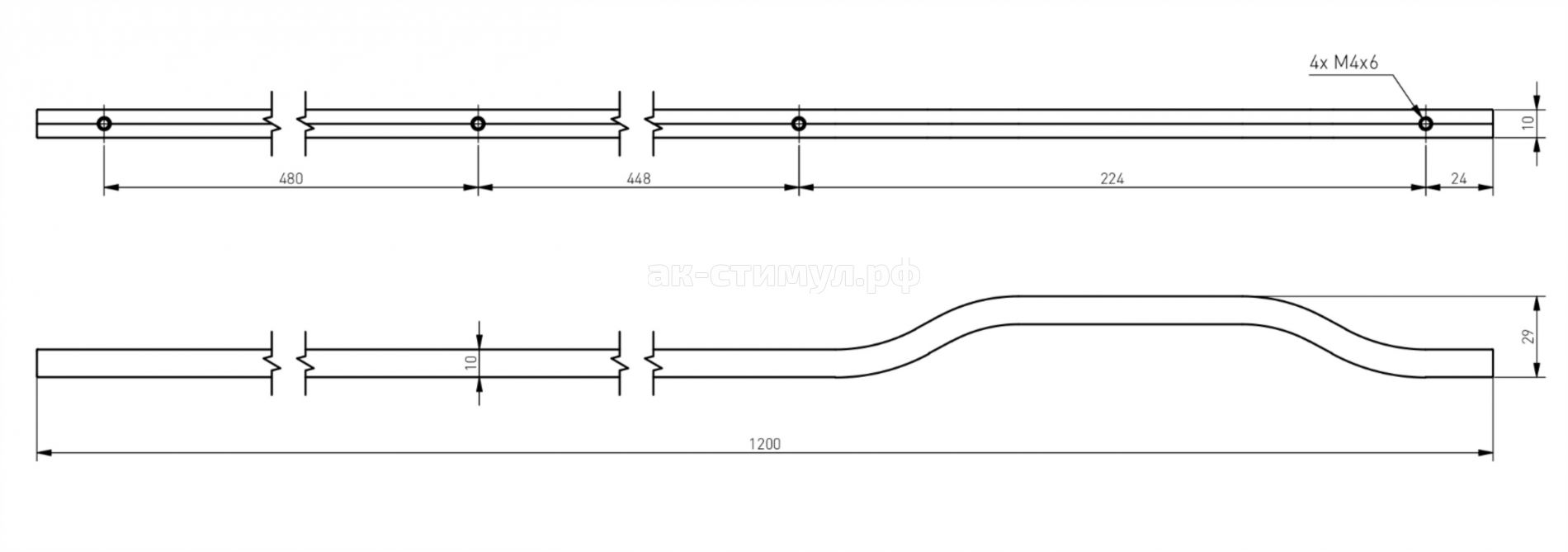 Ручка крепится на 4 винта. Межцентровые расстояния на ручке L-1200: 224, 448, 480 мм.