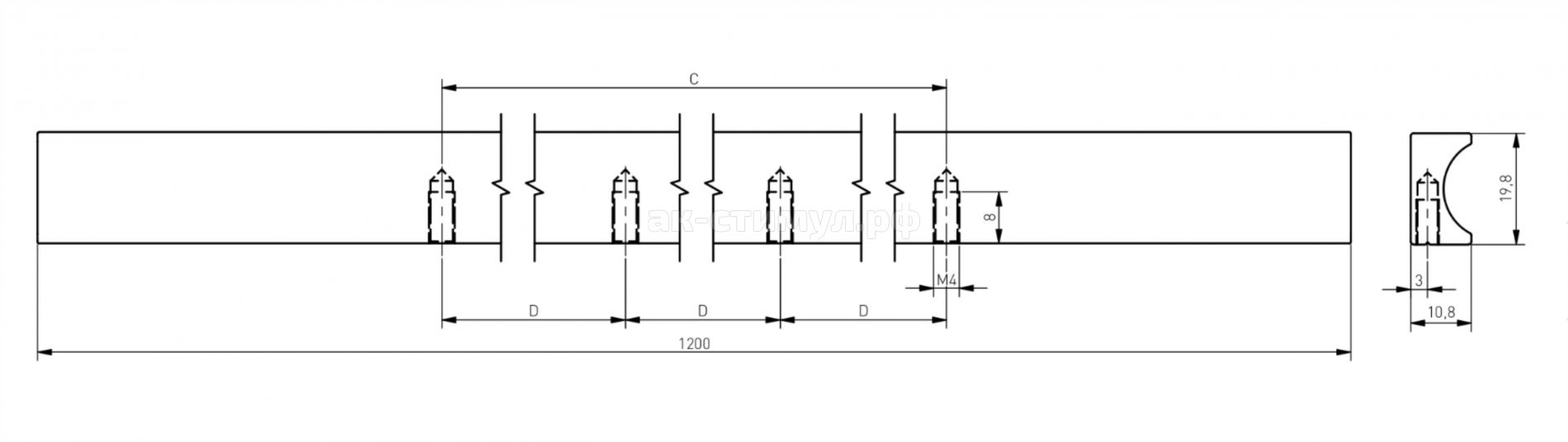 Ручка крепится на 4 винта. Межцентровое расстояние: 3 x 352 мм.