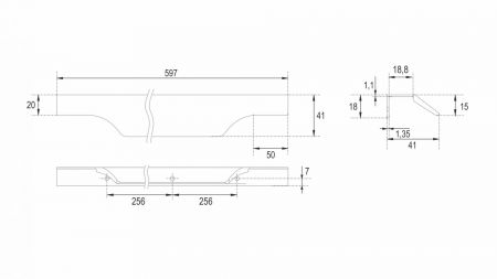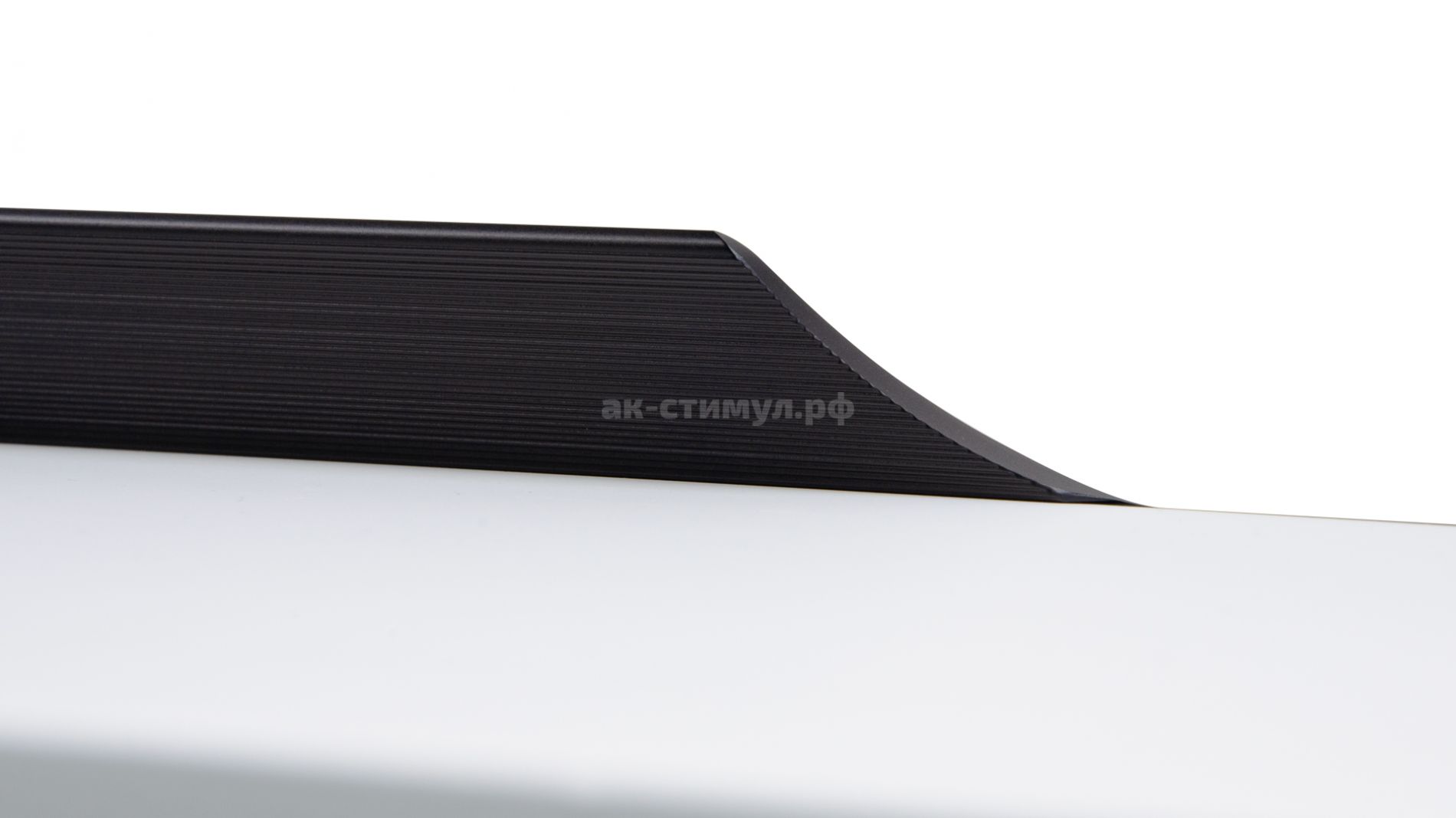 WING RT114 — торцевая ручка с изгибом из алюминия, устанавливается наложением на фасады толщиной 18,8 мм (в цветах BL,GR,SC,SG) и 18,5 мм (в цвете W).