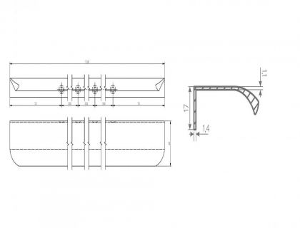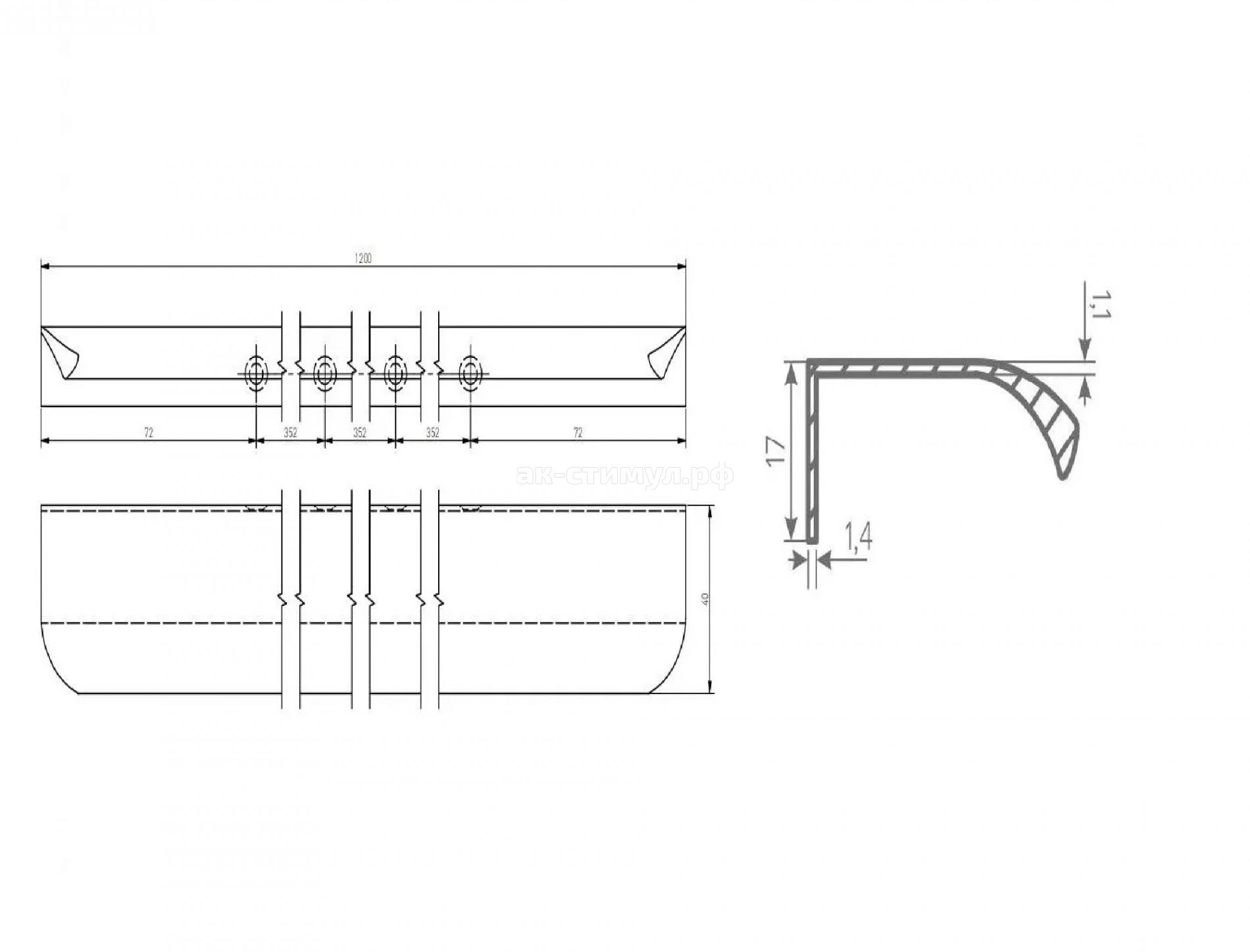 Ручка крепится на 4 самореза. Межцентровое расстояние: 3 x 352 мм.