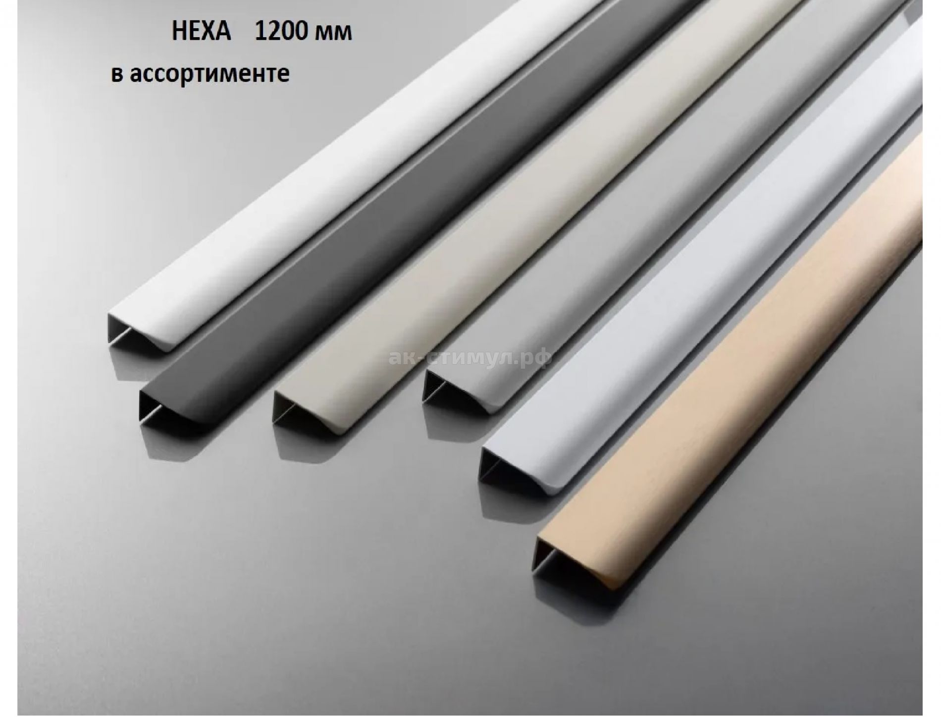Ручка мебельная алюминиевая HEXA L-1200 мм - популярный вариант лицевой фурнитуры, для которого характерна простота конструкции и высокая надежность. При установке ручка накладывается на торец фасада.