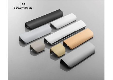 Ручка мебельная алюминиевая HEXA 160мм/190мм, кашемир - популярный вариант лицевой фурнитуры, для которого характерна простота конструкции и высокая надежность. При установке ручка накладывается на торец фасада.