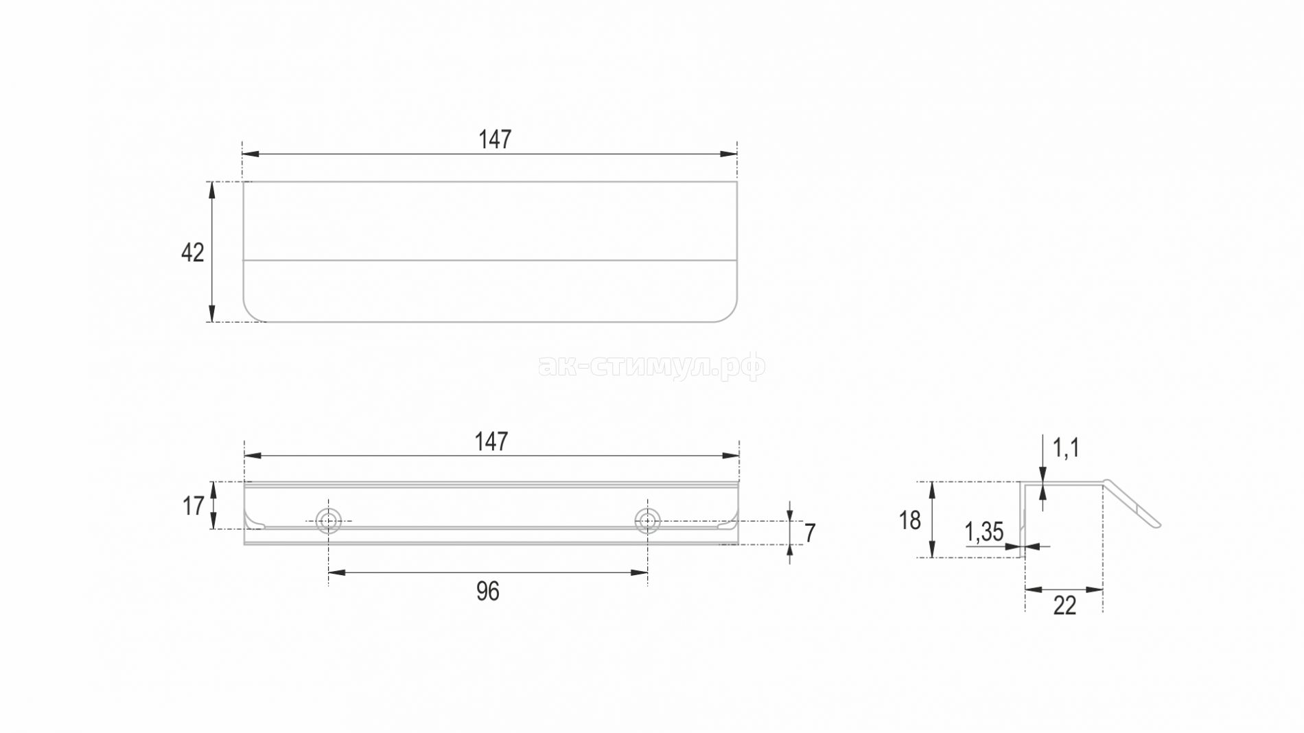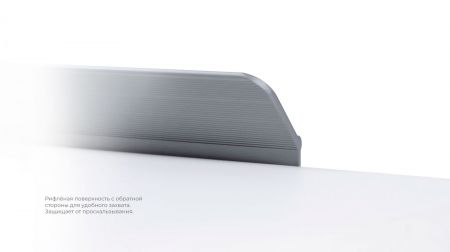 KANT RT013 можно устанавливать не только вертикально, но и горизонтально — для завершённого образа мебельного гарнитура. Модель закрепляется на верхний торец фасада, саморезы (приобретаются отдельно) вкручиваются в отверстия с фаской с задней стороны фасада.