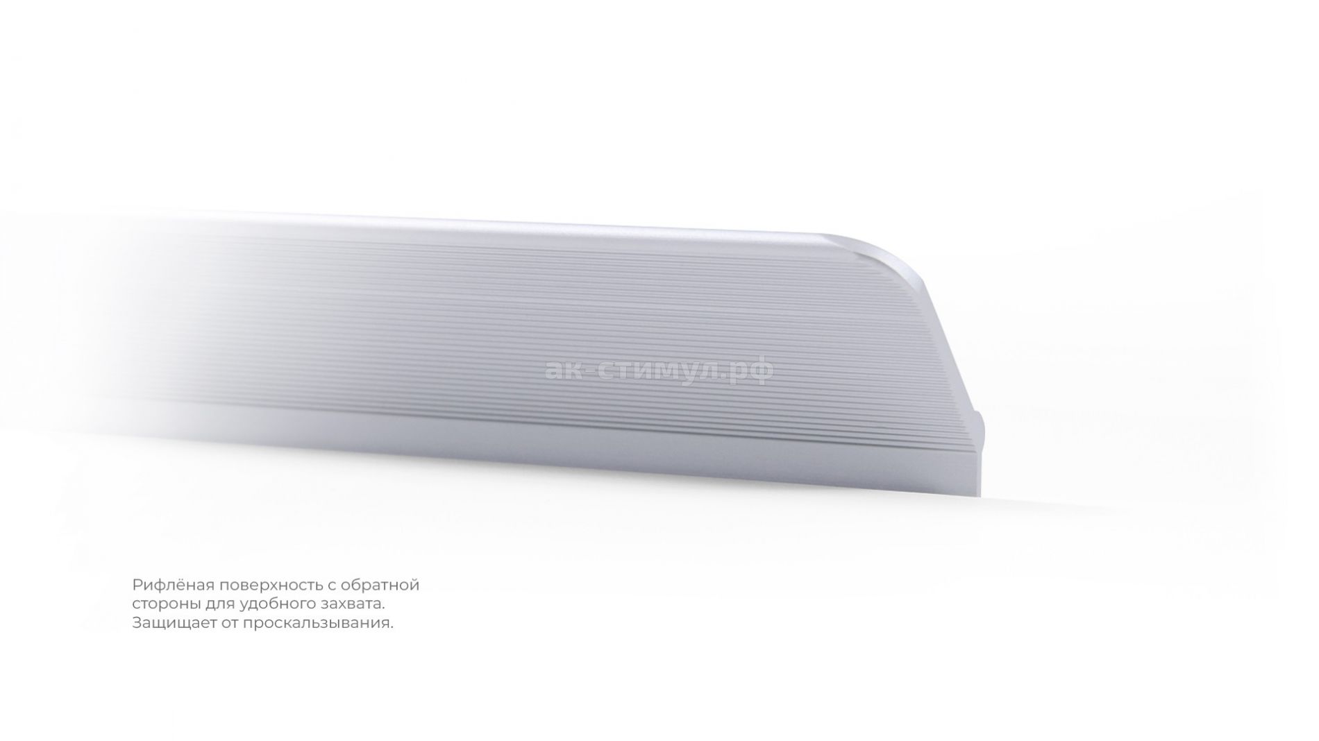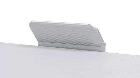 Геометричная торцевая ручка из алюминия, с трубкообразным выступом и рифлением в зоне захвата для эргономичного использования ручки без соскальзывания. Устанавливается наложением на фасад толщиной от 16 мм.