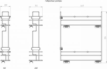 Бутылочница Квадро 150мм, левая, 4 перегородки, 449х109х554мм, направляющие GTV с доводчиком, хром