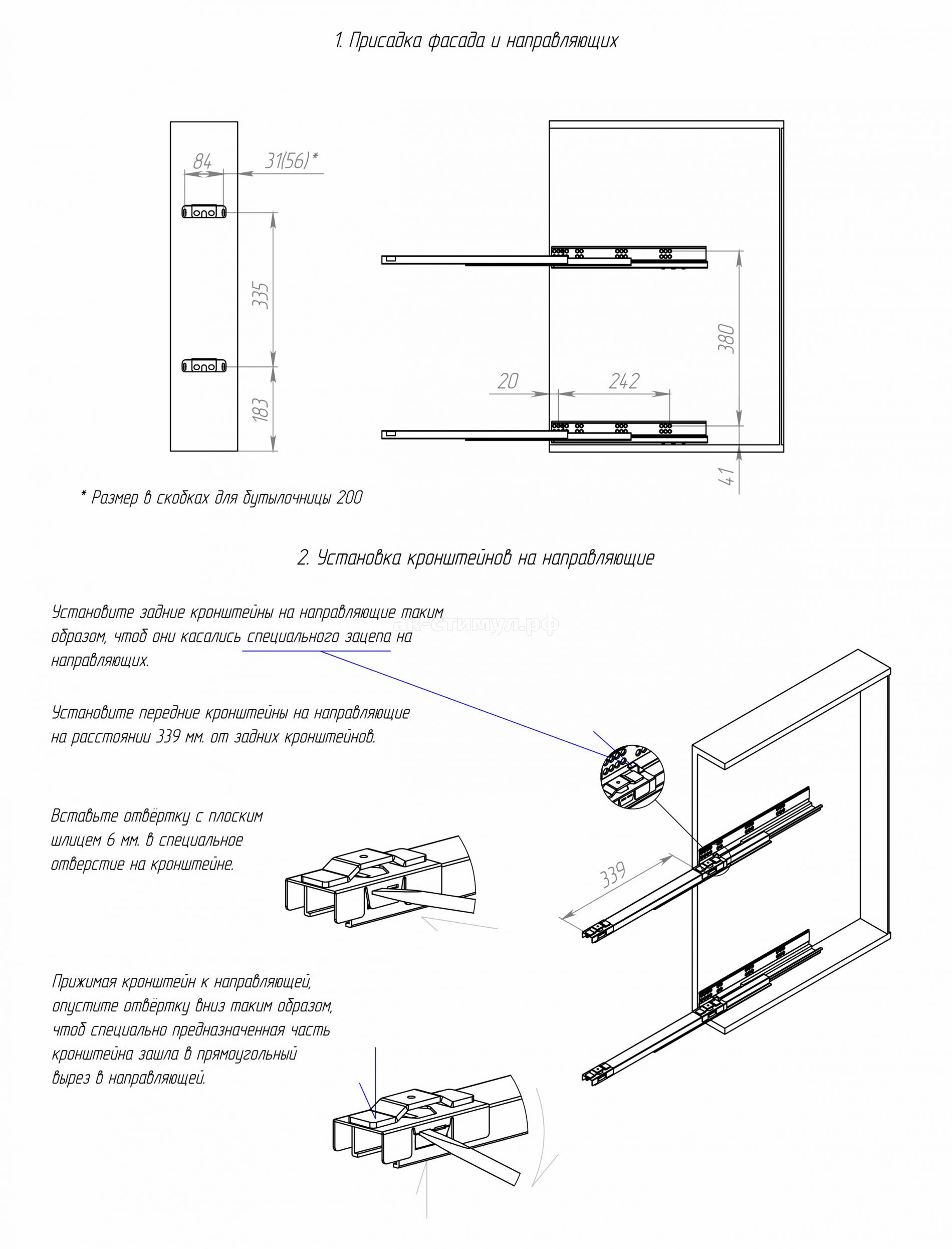 - Простота установки. Бутылочница легко монтируется в нижний шкаф - вы быстро адаптируете ее под свой кухонный гарнитур.