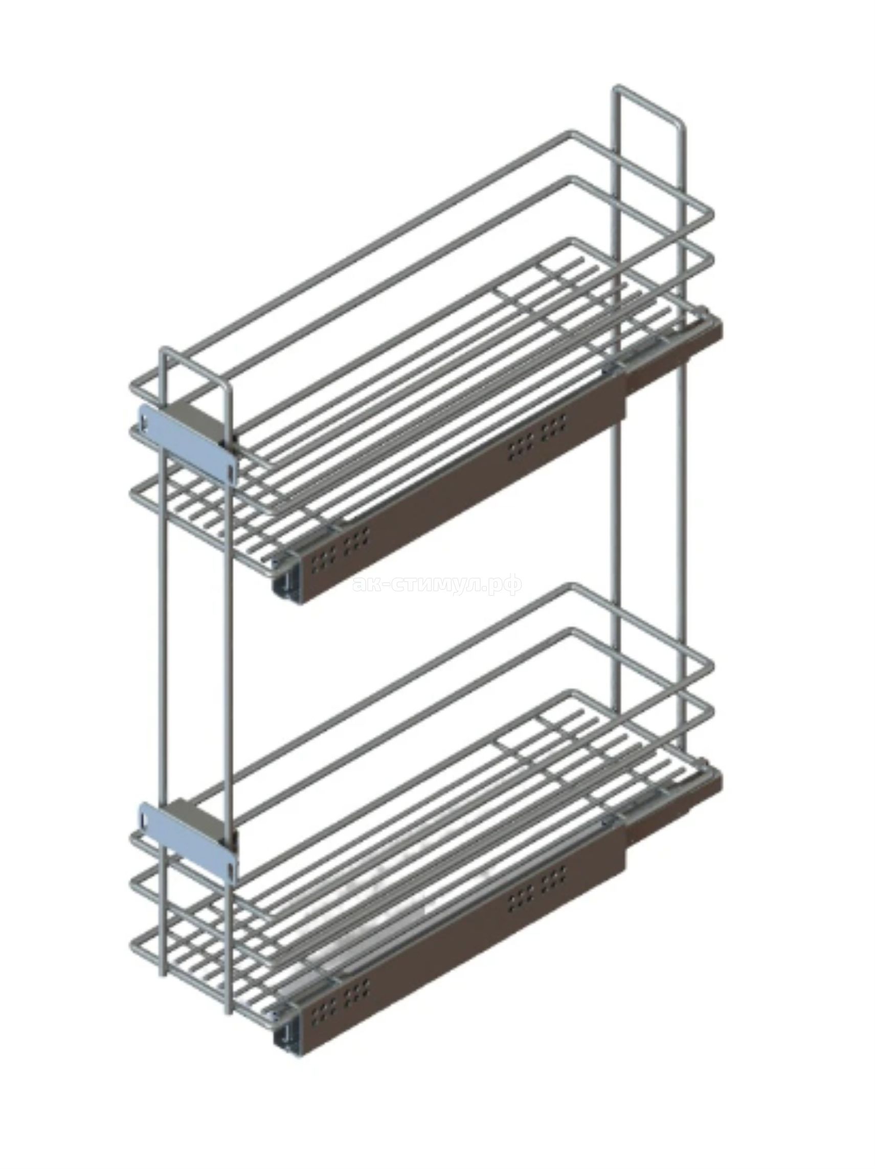 Корзина в верхний шкаф 150мм, 2 яруса, 95х260х500мм, боковое правое, с доводчиком