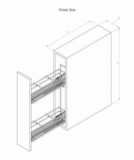 Бутылочница в модуль 200 мм, правая, направляющие GTV с доводчиком, графит - специализированный элемент кухонной мебели в виде двухуровневой выдвижной корзины, предназначенный для рационального хранения бутылок и ёмкостей с жидкостями (растительное масло, соусы, напитки и т. п.), а также банок со специями, крупами и другими продуктами.