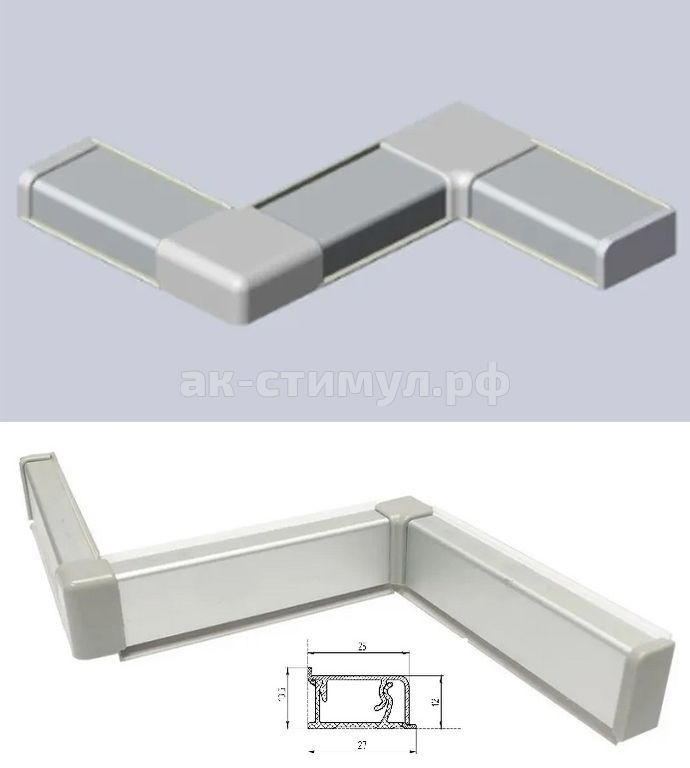 Плинтус алюминиевый 25х12мм (КВАДРО- С), L=3м. Серебро