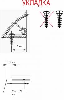 Обратите внимание на то, что расстояние от центра отверстия до края бортика должно составлять максимально 20 мм, а основной профиль должен надлежащим образом прилегать к стене. При монтаже на допускается применение шурупов с потайной головкой! В данном случае рекомендуется использовать шурупы с полукруглой головкой и полной резьбой 3х15 мм (7 штук на метр).