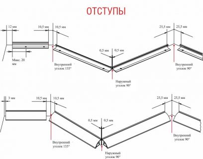 5.Монтаж верхних профилей начинается с внутреннего угла. Фасонный элемент для внутреннего угла (90 или 135 гр.) следует вставить в верхний профиль и начать монтаж с соответствующего угла. Прежде чем верхний профиль будет зафиксирован в основном профиле до соседнего уголка, необходимо сначала установить следующий фасонный элемент.