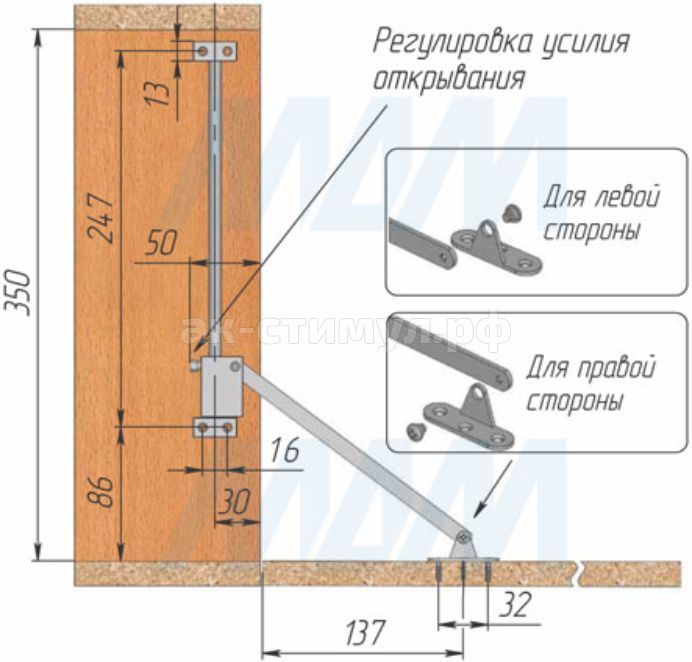 представленные механизмы являются универсальными (можно устанавливать как на левую, так и на правую боковины корпуса);