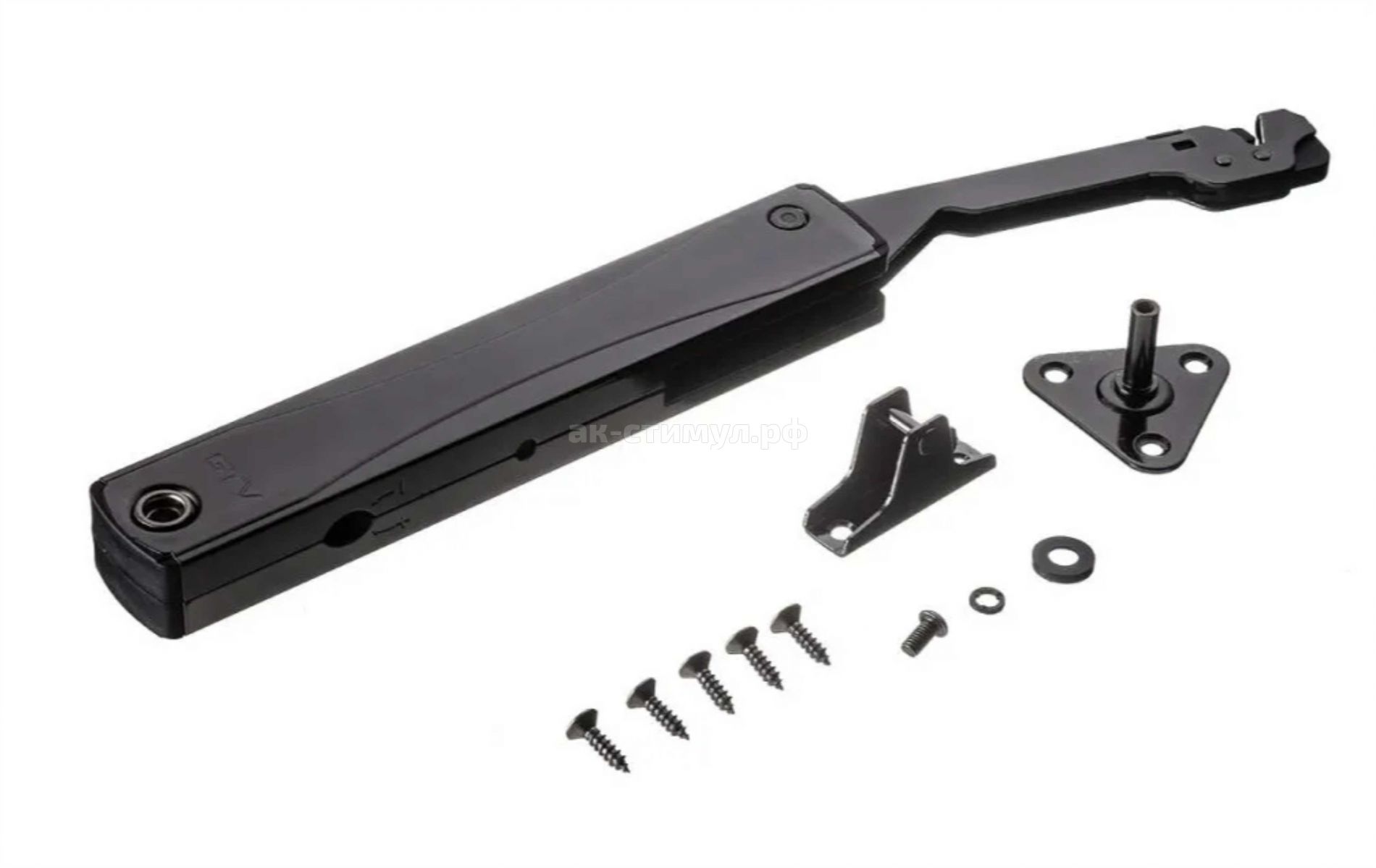 Подъемник MINILIFTNEW Medium - без доводчика, для фасада 3,5-4КГ, черный - функциональная мебельная фурнитура, используемая для поднятия фасада и его фиксации в открытом положении. В зависимости от размера и веса фасада, возможна установка подъемника как с одной стороны, так и пары с двух сторон.