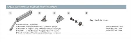 Петли и амортизаторы, используемые совместно с подъемником, приобретаются отдельно. В зависимости от типа используемых петель, возможна работа подъемника в режиме Push to open (открывание фасада от нажатия) или Soft close (плавное закрывание фасада).