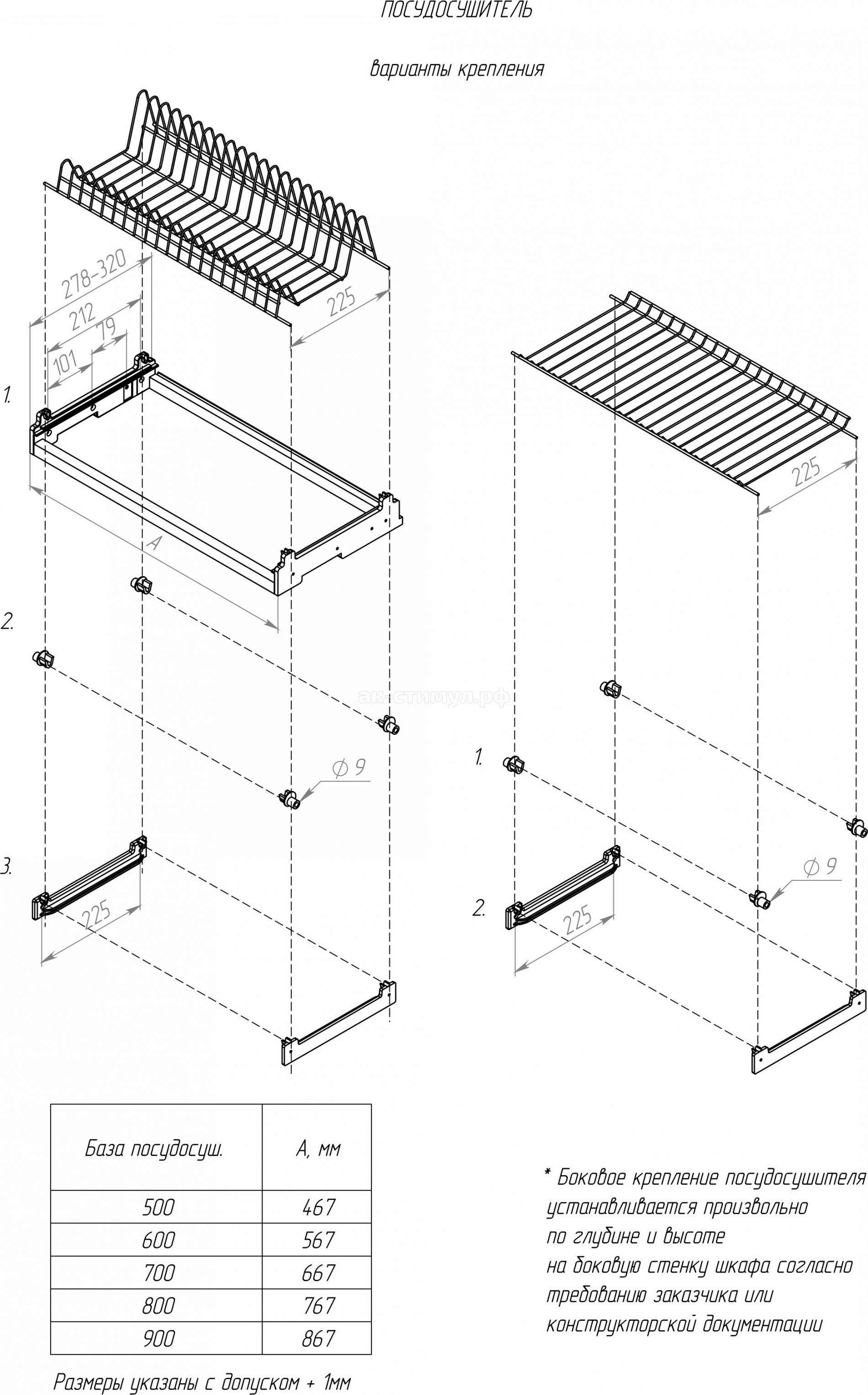 Посудосушитель ЧЕРНЫЙ в верхнюю базу 900мм, с Алюминиевой рамой + 2поддона (вариант 5) Россия