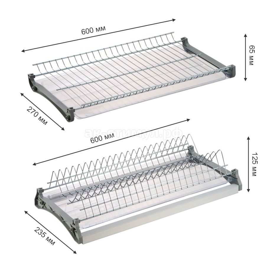 Посудосушитель ГРАФИТ в верхнюю базу 600мм, + 2поддона (вариант 3) Россия
