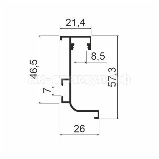 Горизонтальная ручка-профиль L-образная верхняя для нижних баз h=57мм L=4м, черный браш