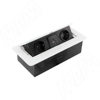POP-UP выдвижной блок розеток, 265*118 мм, 2 розетки, 1 USB, 1 USB Type-C, быстрая зарядка, белый