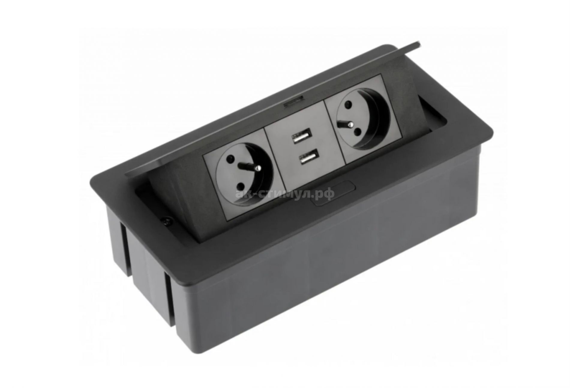 Удлинитель для офиса прямоугольный , 2xUSB, черный, без провода