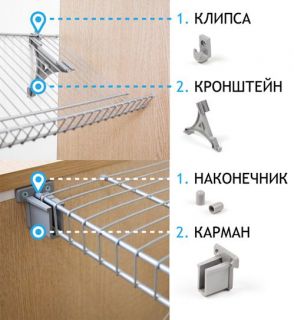 - Кронштейны с клипсами или карманы сетчатой полки,
