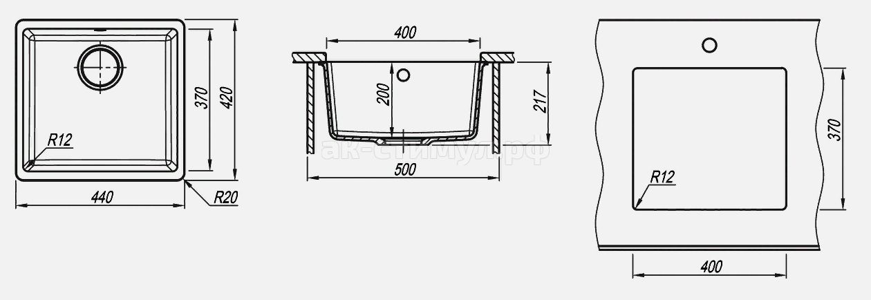 Мойка поставляется с полным комплектом арматуры, сифон с переливом, выпуск, крепеж, а также имеется и шаблон под вырез столешницы, это упростит монтаж