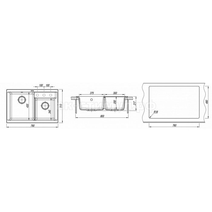 Мойка Касси 780 - основная чаша (37.5 x 43 сантиметра) дополнительная (30 x 34 сантиметра), подойдет для любого кухонного гарнитура.