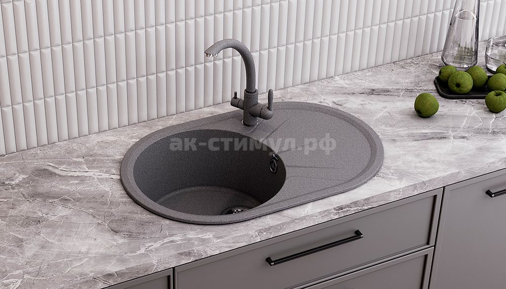 Мойка врезная, 80% мраморная крошка, 20% полиэфирная смола, в комплекте сливная арматура c гофро трубой, герметик.