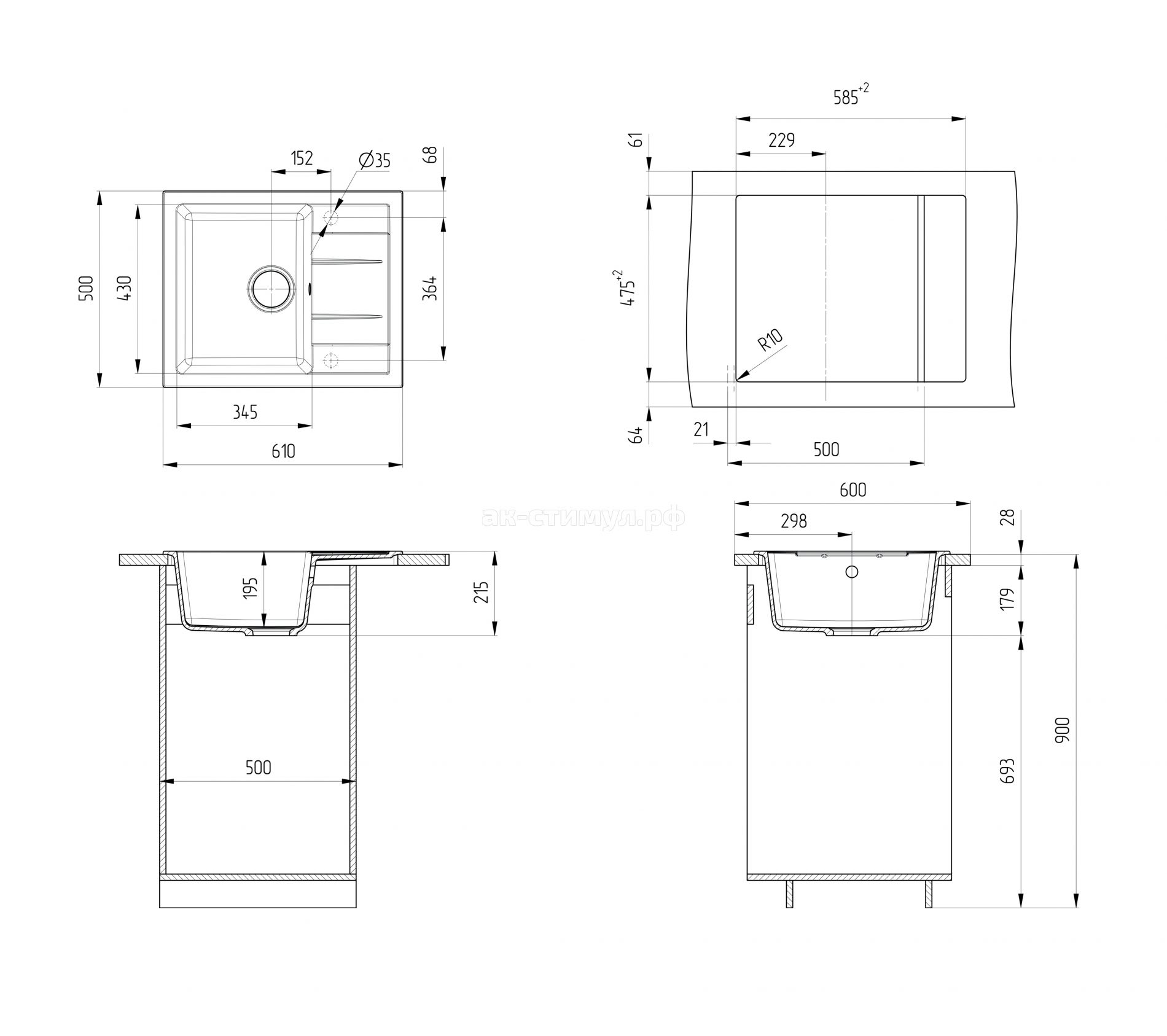 « Назад Главная»Каталог»Мойки для кухни»Мойки каменные, серия стандарт, Ulgran»Мойка Ulgran, графитовый. Россия