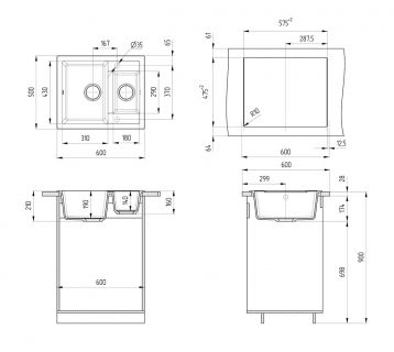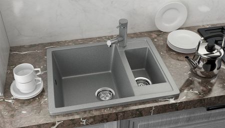 Мойка врезная, 80% мраморная крошка, 20% полиэфирная смола, в комплекте сливная арматура c гофро трубой, герметик.
