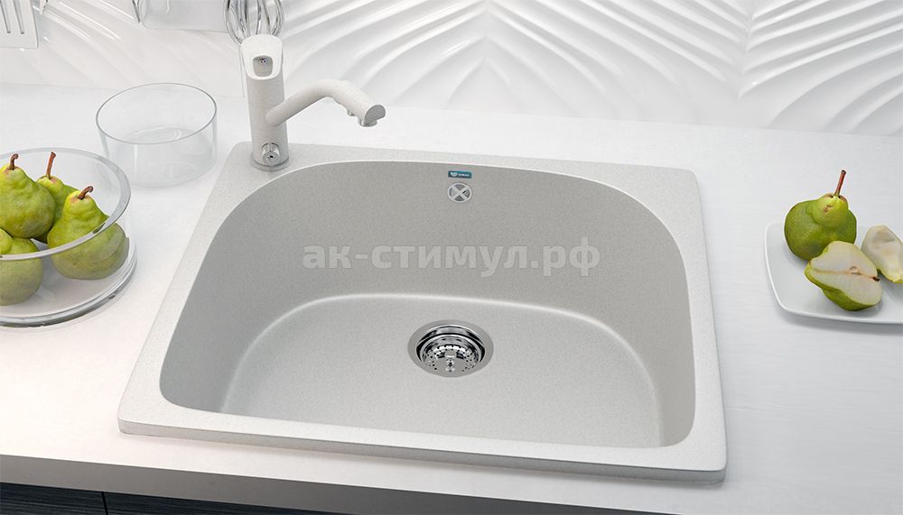 Мойка врезная, 80% мраморная крошка, 20% полиэфирная смола, в комплекте сливная арматура c гофро трубой, герметик.