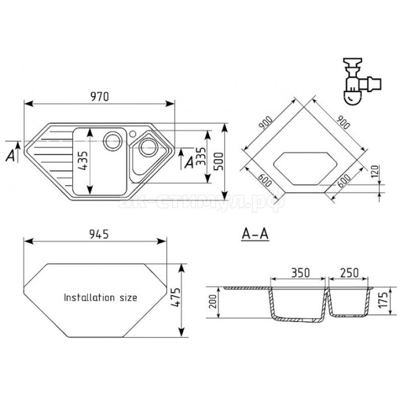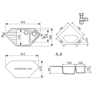 ULGRAN U-409 - двухсекционная угловая кухонная мойка с отверстием под смеситель, с основной чашей и коландером. В комплектацию входит сливная арматура с гофротрубой, технический паспорт и гарантийный талон. Существует возможность установки дозатора ULGRAN слева от смесителя - доп. отверстие в таком случае потребитель делает самостоятельно с помощью фрезы Форстнера (не входит в комплектацию и приобретается отдельно).