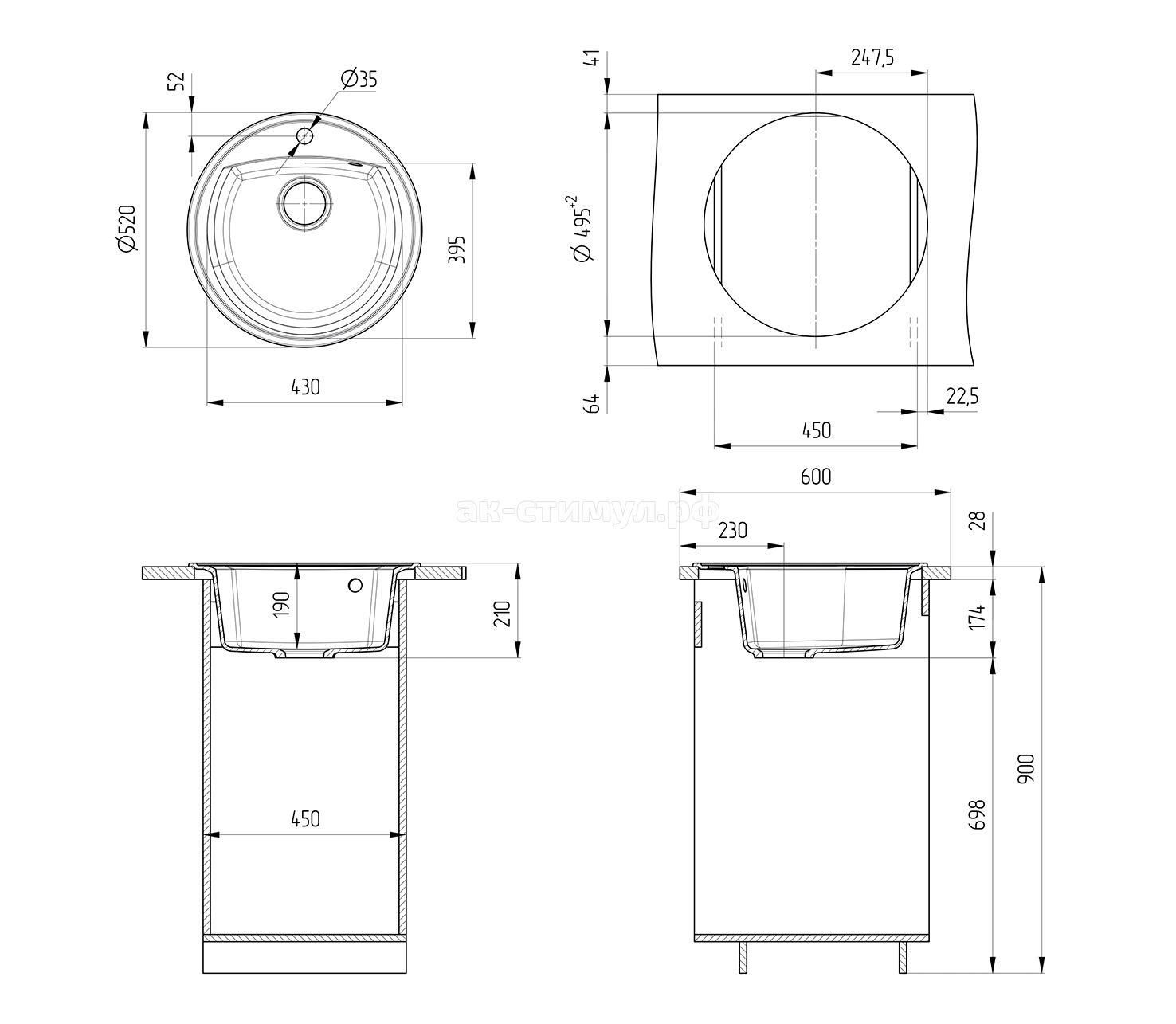 « Назад Главная»Каталог»Мойки для кухни»Мойки каменные, серия стандарт, Ulgran»Мойка Ulgran, темно-серый. Россия
