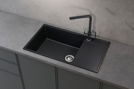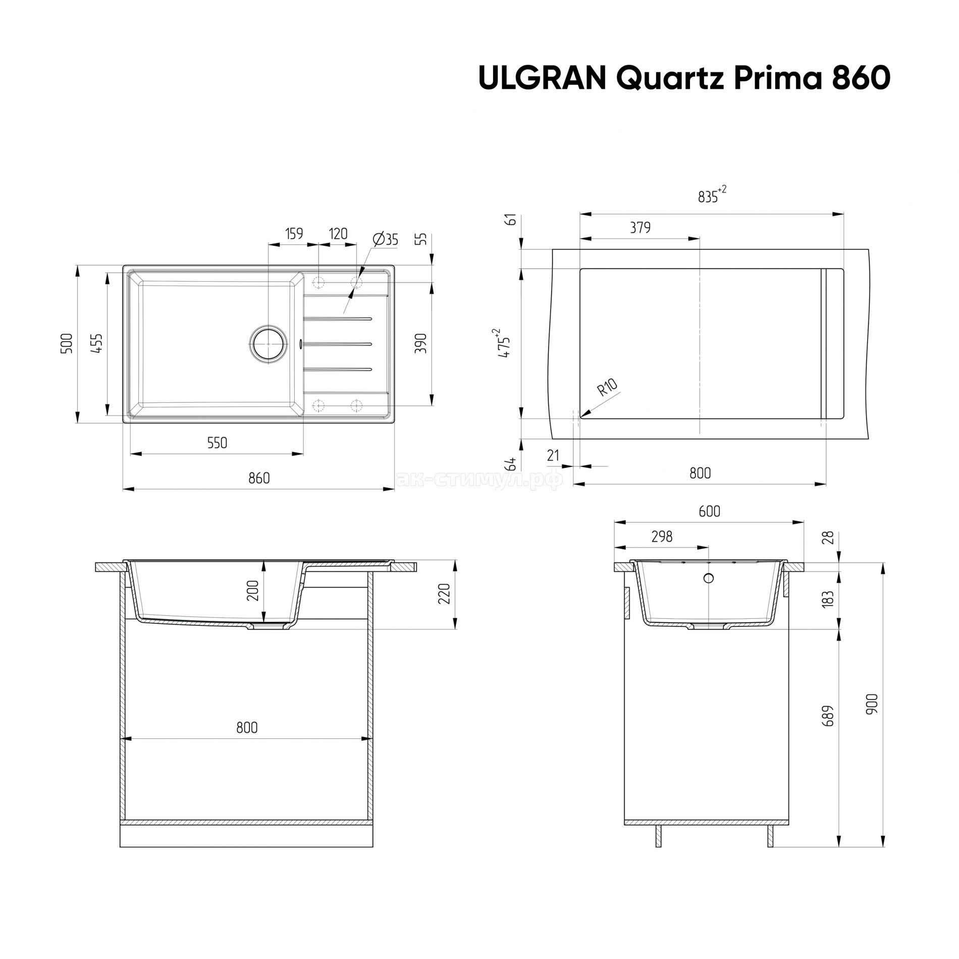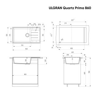 Кухонная мойка ULGRAN Quartz Prima 860 – профессиональная односекционная прямоугольная кухонная мойка с увеличенной чашей и функциональным крылом, изготовленная на современном автоматизированном оборудовании из высококачественных кварцевых композитов по инжекционной технологии (литье под давлением). Кварцевый композит является поистине инновационным материалом в производстве кухонных моек! Он сочетает в себе такие неоспоримые преимущества как повышенная влагостойкость и термостойкость, возможность придать мойке при изготовлении практичный и функциональный дизайн, увеличенное сопротивление внешнему износу, снижение уровня шума при падении струи воды, безусловная гигиеничность и простота в уходе, а также сравнительно малый вес при высокой прочности.
