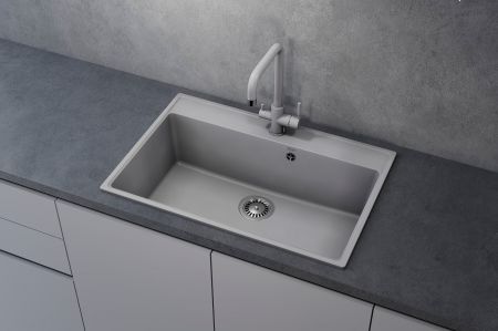 Кухонная мойка ULGRAN Quartz Forte 760 является односекционной, с отверстием под смеситель, при этом существуют 4 дополнительно намеченных отверстия под аксессуары (дозатор или клапан-автомат). Мойка устанавливается в кухонный шкаф шириной от 80 см. В комплектацию входят: сливная арматура серии «Элит» с гофротрубой, технический паспорт и гарантийный талон. Данная кухонная мойка имеет современный минималистичный дизайн и легко может стать украшением кухни и настоящим эргономичным центром.