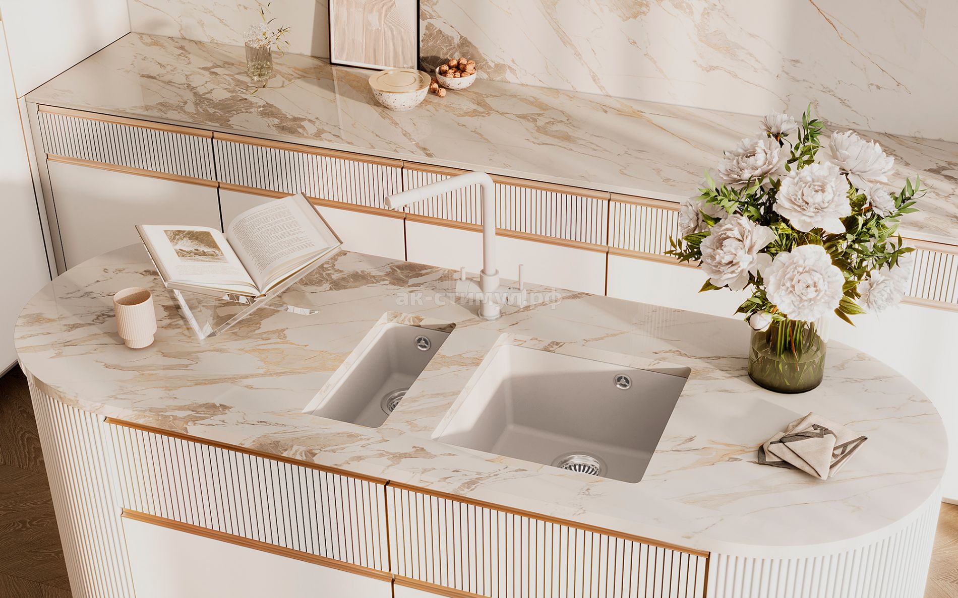 Кварцевый композит является поистине инновационным материалом в производстве кухонных моек! Он сочетает в себе такие неоспоримые преимущества как повышенная влагостойкость и термостойкость, возможность придать мойке при изготовлении практичный и функциональный дизайн, увеличенное сопротивление внешнему износу, снижение уровня шума при падении струи воды, безусловная гигиеничность и простота в уходе, а также сравнительно малый вес при высокой прочности.