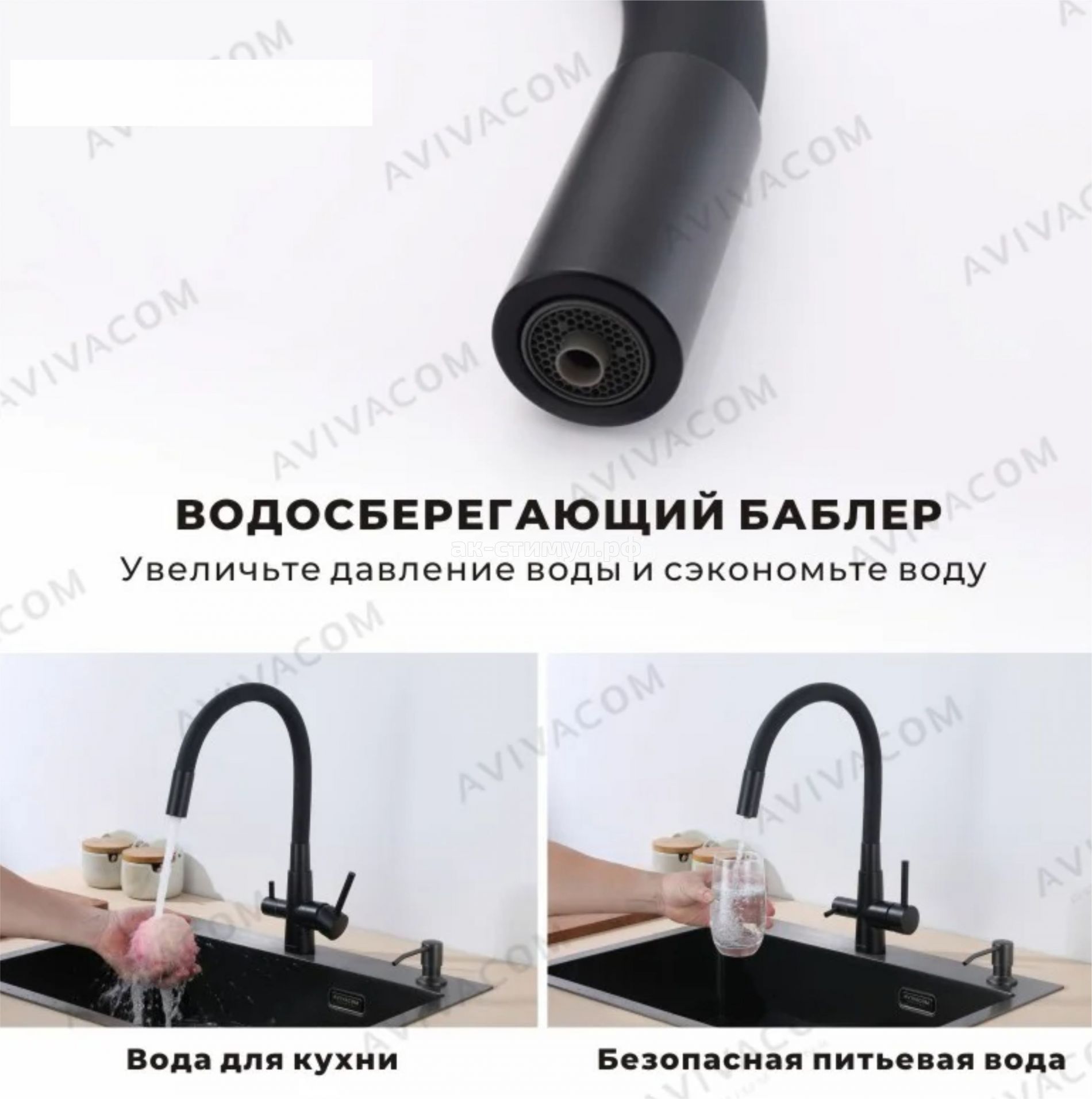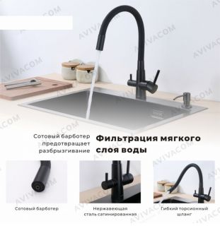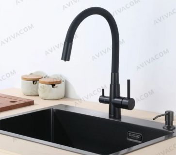 « Назад Главная»Каталог»Мойки для кухни»Смесители для кухонных моек»СМЕСИТЕЛЬ AVIVA»Смеситель черный с черным упругим изливом и краном для питьевой воды