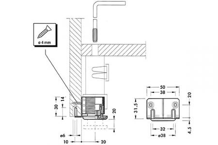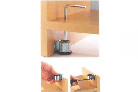Опора регулируемая металлическая D38, H30 CAMAR (150 кг) - мебельная ножка для тяжелого шкафа, регулируемая по высоте. Диапазон регулировки - от 30 мм до 50 мм. Монтируется посредством забивания в торец мебельной боковины и дополнительно закрепляется двумя саморезами.