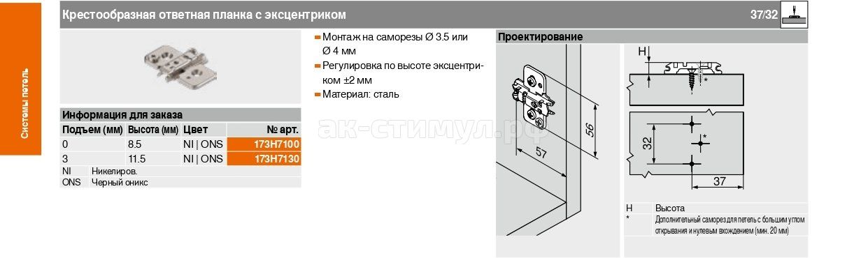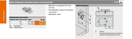 Крестообразная ответная планка для петли (c эксцентриком) - "Clip" - Подъем "0" мм - (ONYX) - Монтаж