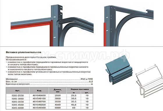 совместно с угловым профилем в гаражных и промышленных воротах всех типов монтажа.